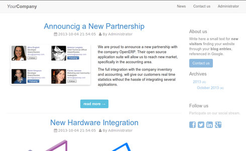 Odoo's unique frontend and backend integration makes organization and publication so easy. Easily design beautiful speaker biographies and talks description.