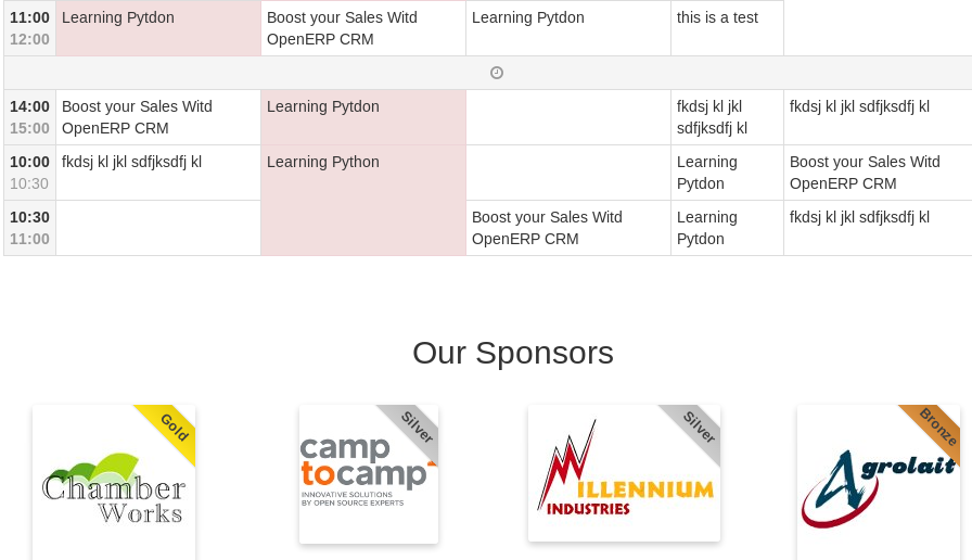 Add sponsors to your events and publish sponsors per level (e.g. bronze, silver, gold) on the bottom of every page of the event.